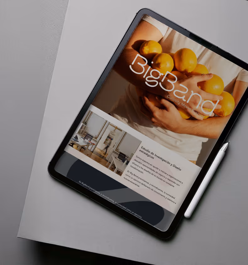 Cuerpo Directo: Hay marcas con un portfolio increíble que, sin embargo, comienzan a perder visibilidad porque su imagen les pone un límite al crecimiento. Con Bigband, el desafío fue un rebranding integral para que su estética fuera el reflejo fiel de la potencia de sus ideas. El reto era construir una identidad no solo venda estética, sino la solidez de un socio de confianza. Y para ello elevar el estándar visual para que la marca deje de ser un freno y pase a ser un motor.